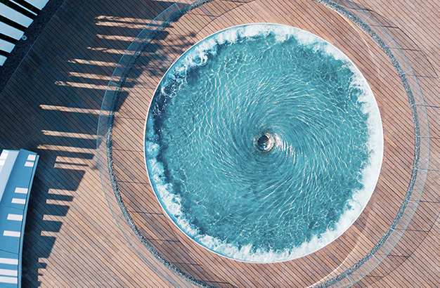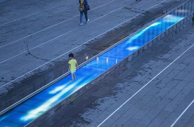 水本無形,它的物理特性讓它能輕易地跟隨容器而呈現(xiàn)不同的面貌。獨特的延展性使得水能呈現(xiàn)無以計數(shù)的不同效果。燈光的布置,介質的紋理,顏色和動態(tài)都能給水帶來無窮的變化。